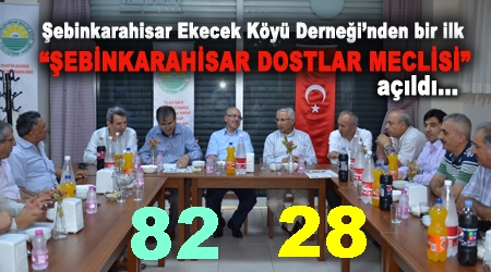 Şebinkarahisar Ekecek Köyü Kalkındırma ve Güzelleştirme Derneği'nin ev sahipliğinde düzenlenen ve bir ilk olması hasebiyle katılımcılar arasında oldukça merak uyandıran “Şebinkarahisar Dostlar Meclisi” katılımcılardan tam not aldı. Şebinkarahisar’ı ilgilendiren konular hakkında katılımcıların serbestçe görüşlerini ifade ettikleri toplantıda, gündeme gelen konularda serbest bırakıldı. Dernek başkanı Necdet Bilican, Ramazan ayının önemi ile ilgili bir konuşma yaparak davetlerine icabet eden başta Milletvekili Ünal Kacır olmak üzere tüm katılımcılara teşekkür etti.